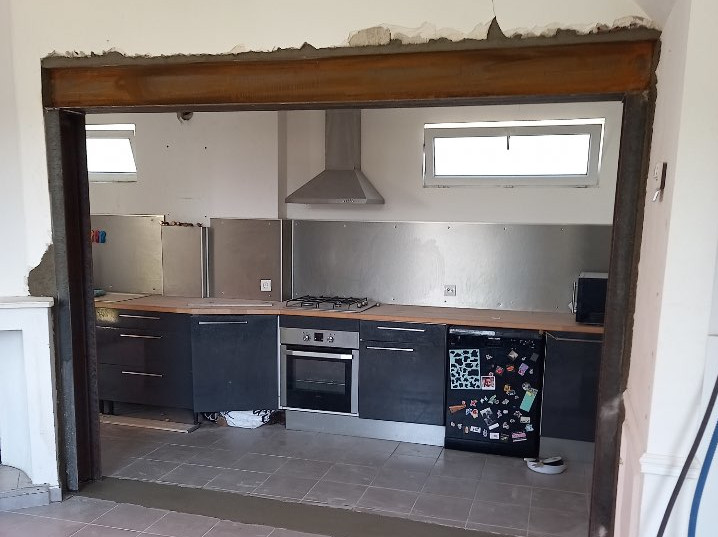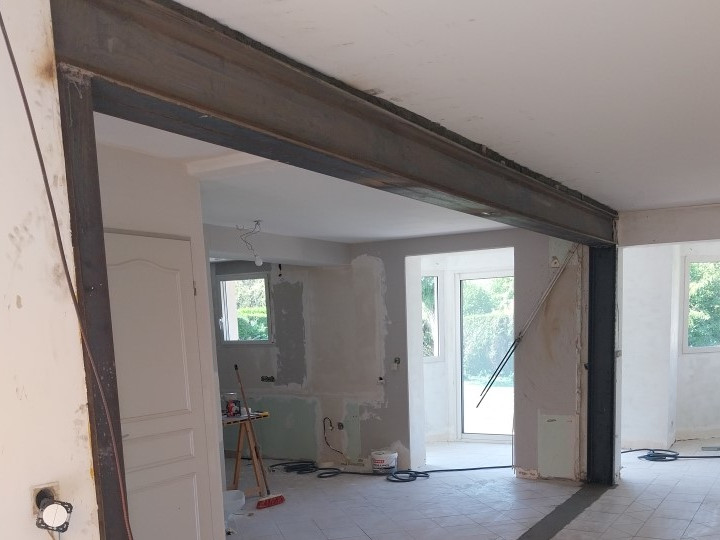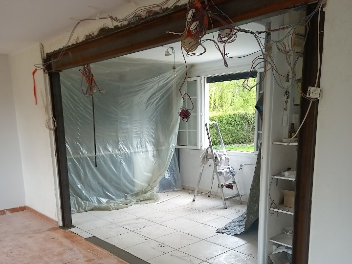 L’ouverture d’un mur porteur s’effectue toujours du haut vers le bas. On commence par ouvrir le mur porteur juste en-dessous du linteau, puis on casse le mur progressivement, en s’assurant toujours que le linteau reste bien en place. L’entreprise TDEG vous montre ici ses réalisations d’ouverture de mur porteur.